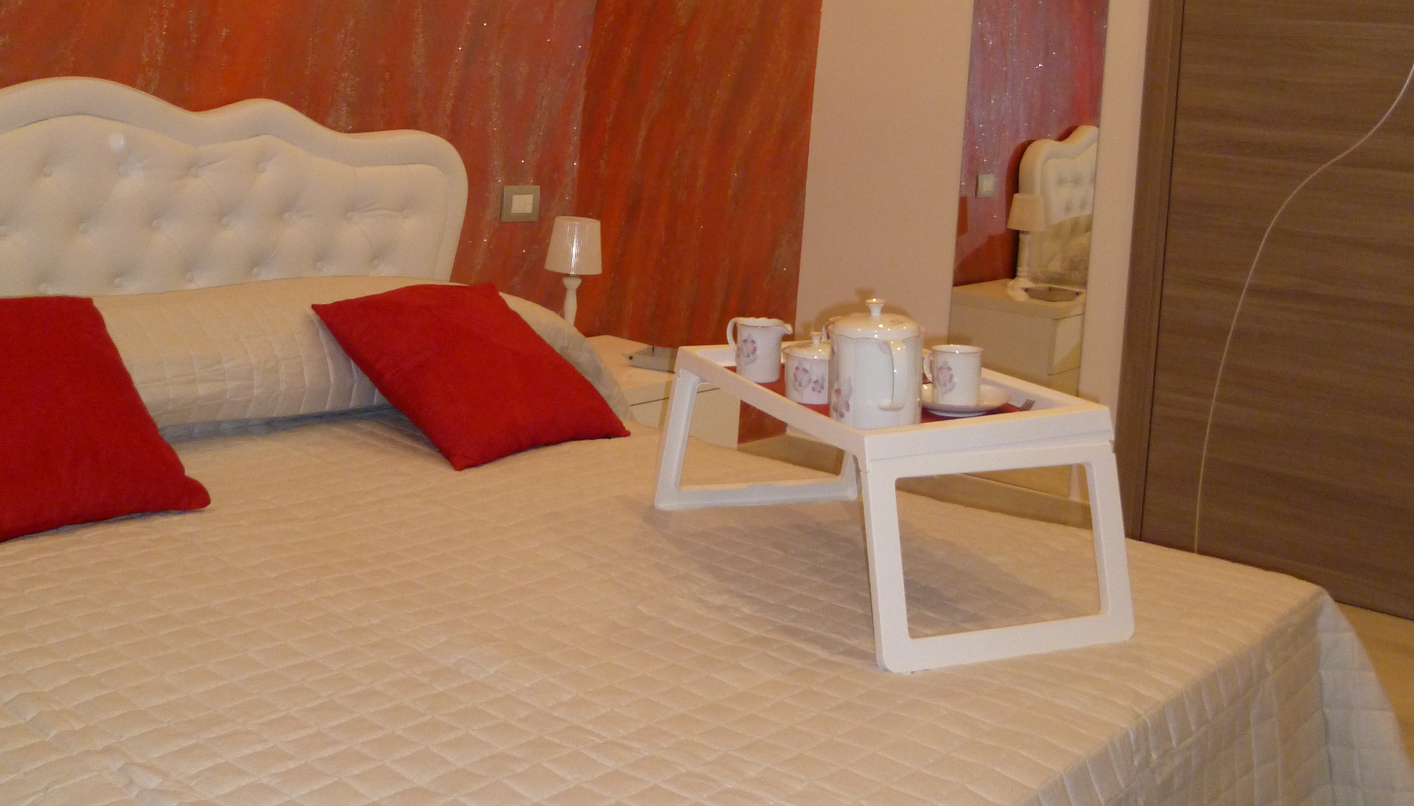 Il rosso la fa da padrona con lo sfondo candido del letto padronale.